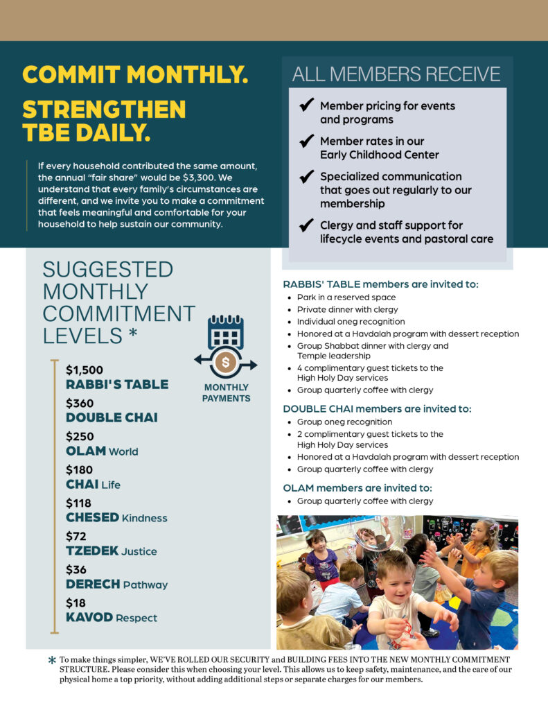 At Temple Beth El, we believe that no person or family should be excluded because of economic circumstances.